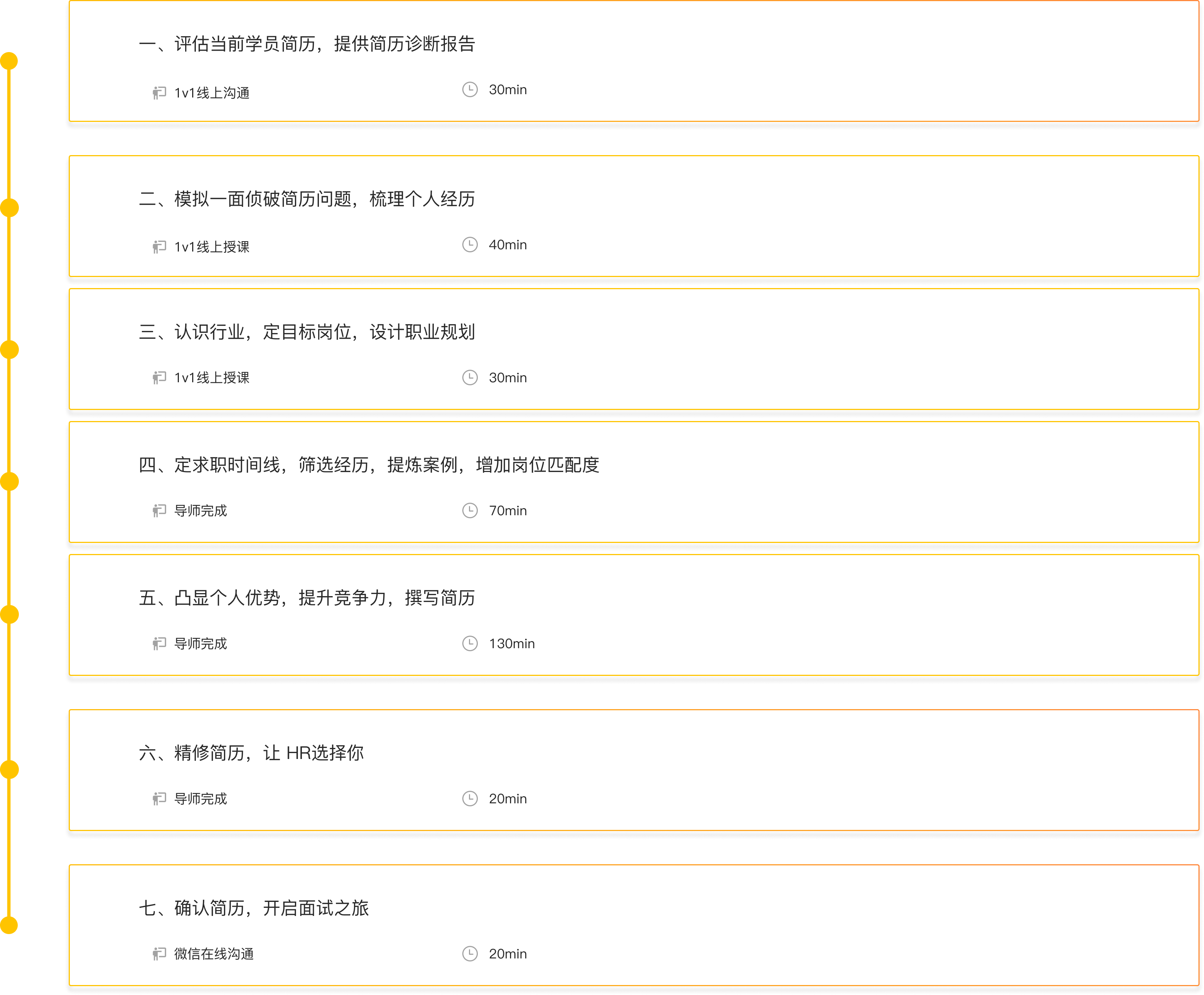 我们的课程服务可以帮助你了解就业市场,如何进行规划,写简历等。针对特定求职方向,进行深入具体的学习。从必备知识点到面试技巧,从面经题库到名企项目实操,导师为你指明方向,让你全面掌握行业求职必备知识技能,提升背景,在面试中脱颖而出。课程结束后可以全面掌握行业必备知识技能,通过实战项目提升背景和简历含金量,以及掌握面试考点及技巧。